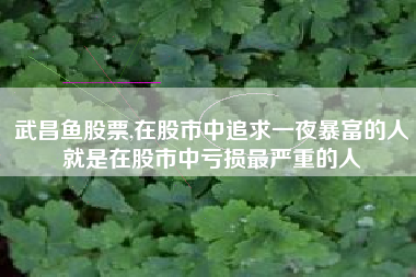 武昌鱼股票,在股市中追求一夜暴富的人就是在股市中亏损最严重的人?