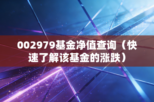 今天又来跟大家唠唠嗑,说说我最近捣鼓的那个002979基金的事儿。我就是想看看这基金最近咋样,值不值得继续投。