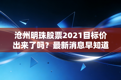 那次给沧州明珠估摸2021年目标价的经历,虽然没让我发大财,但也算是一次挺有意思的实践。至少让我明白了,投资这事儿,真得自己下功夫,不能光听别人忽悠。分享出来,也算是给大家提个醒,看个乐呵。
