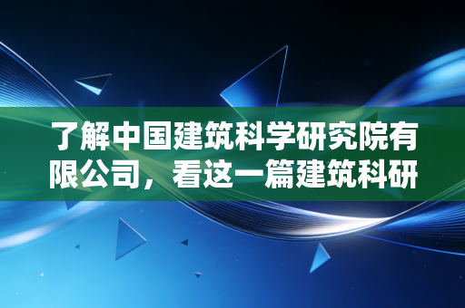 我对“中国建筑科学研究院有限公司”这个名字,没啥特别具体的概念。就听着,国家级的,肯定牛。但具体怎么个牛法,咱也不知道,咱也不敢瞎问不是?后来因为工作上的一些事儿,我才真正开始去了解它,这一了解,可真是挖到宝了。