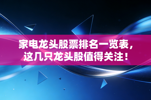 最近我把自己压箱底的自选股名单翻了出来,打算重新捯饬一下。折腾了小半个月,我盯着盘面看那些家电龙头的走势,手都写酸了,总算总结出一份我觉得还算靠谱的家电龙头股票排名一览表。炒股这事儿,看来看去还是得盯着那几个领头的,毕竟大树底下好乘凉,比起那些听都没听过的小盘股,龙头股起码跌了还能涨回来。