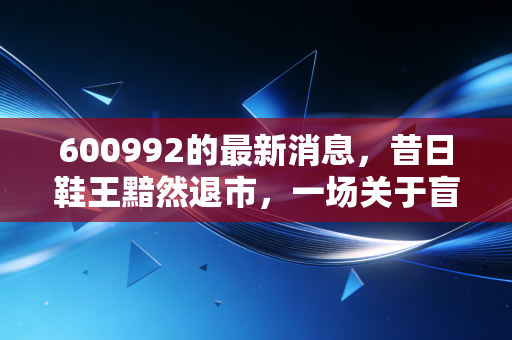 在这个市场上,活着永远比赌赢重要。600992的最新消息不仅仅是关于一只股票的消亡,更是关于价值回归的宣言,愿我们都能读懂这无声的警告,在未来的投资道路上,走得更加稳健,不再为“鞋王”的陨落而买单。