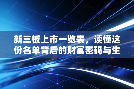 当我们打开搜索引擎,输入“新三板上市一览表”这几个字时,跳出来的往往是一眼望不到边的Excel表格,密密麻麻的代码、简称、以及那些看起来有些枯燥的财务数据,对于很多不熟悉资本市场的人来说,这份名单就像是一份晦涩的“天书”;但对于身处其中的企业家、投资者以及像我这样的财经观察者来说,这不仅仅是一份名单,它是中国中小企业生存状态的真实写照,是无数个关于梦想、挣扎、转型与希望的故事。
