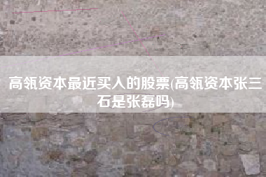 高瓴资本最近买入的股票,高瓴资本张三石是张磊吗?